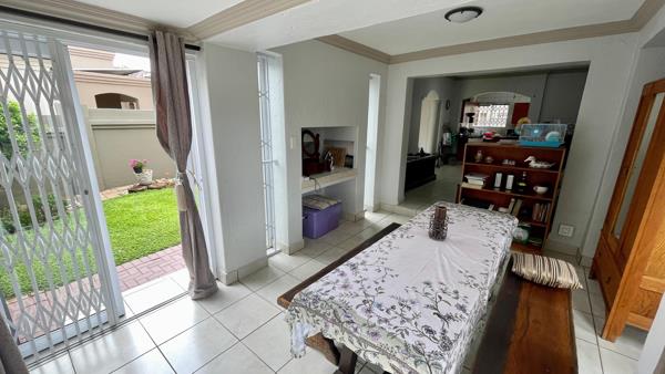 The outdoor area includes a lovely garden and a charming braai area, perfect for enjoying time with family and friends. The property also includes two secure garages and excellent security for peace of mind.