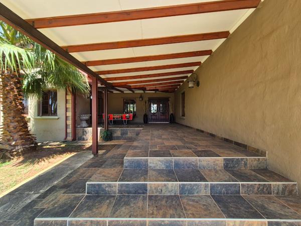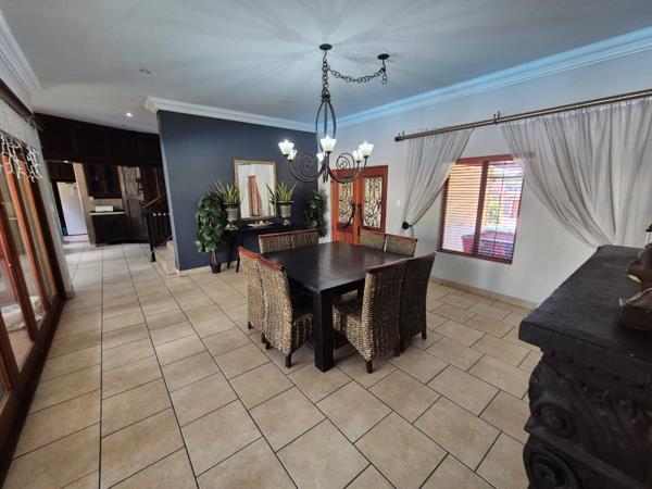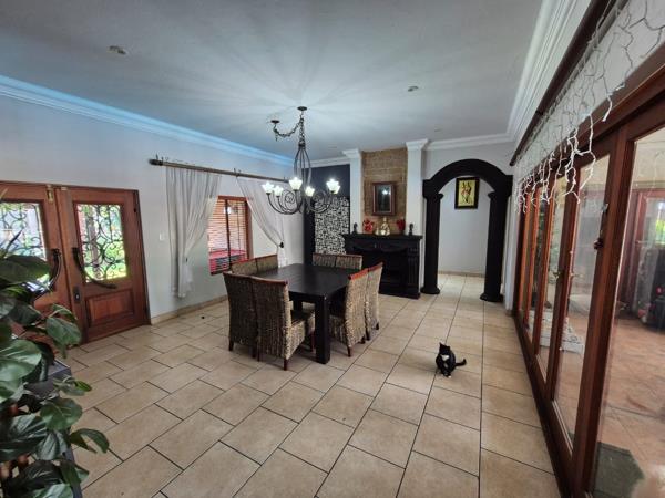 4 Very spacious bedrooms all with dressing rooms or lots of cupboards and en-suite bathrooms. The home boasts a stately living room downstairs with a built-in fireplace, a one of a kind meranti sandblasted kitchen with a scullery. The iron work is amazing on this home, everything is especially made and designed for the home. There is wine cellar close to the kitchen. A study downstairs, lots and lots of cupboards.