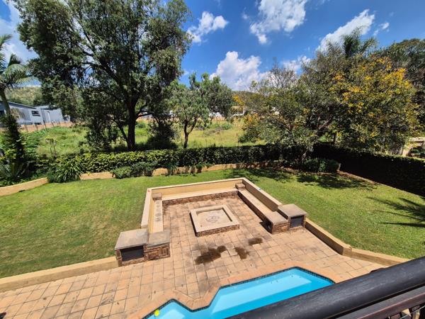 The big family covered balcony upstairs offers a 2nd built-in braai and a beautiful view of nature and mountains.