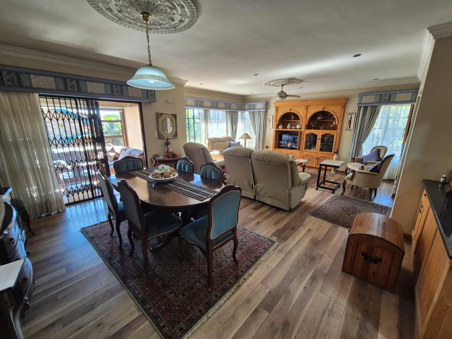 The modern open-plan kitchen includes a separate scullery and flows into the dining and living areas, creating a welcoming atmosphere. All living areas and bedrooms feature stylish laminated flooring for a warm and elegant touch. A cozy family/TV room adds to the home''s comfortable layout.