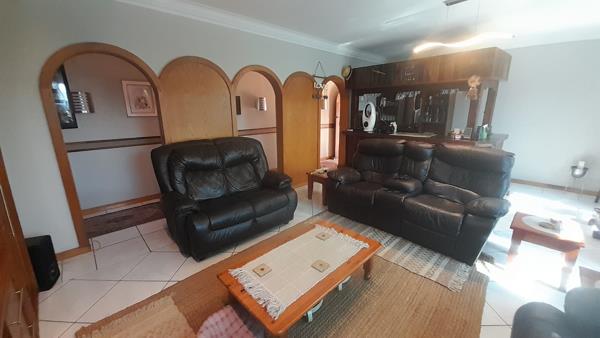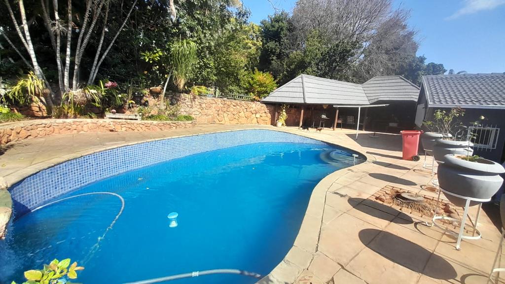 Step outside to a beautifully landscaped garden with a sparkling pool with a water feature and a lapa for relaxed outdoor gatherings.