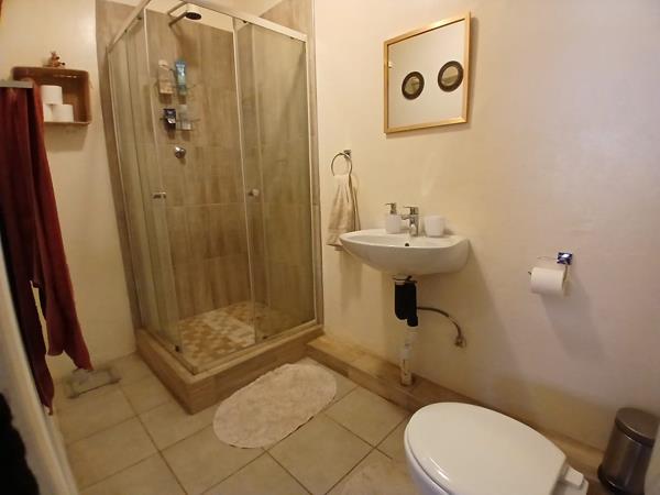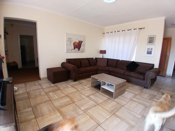 An enclosed entertainment area flows out to a covered patio with built-in braai, overlooking a spacious garden and sparkling swimming pool