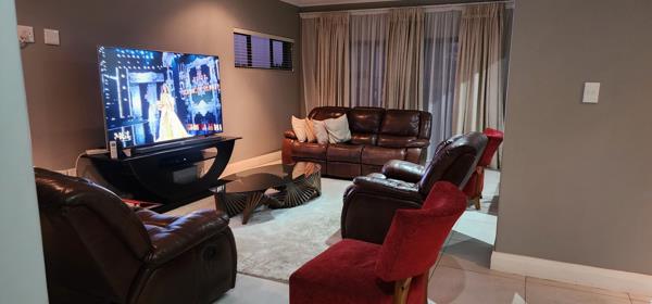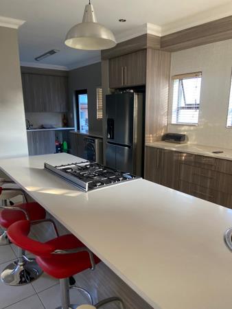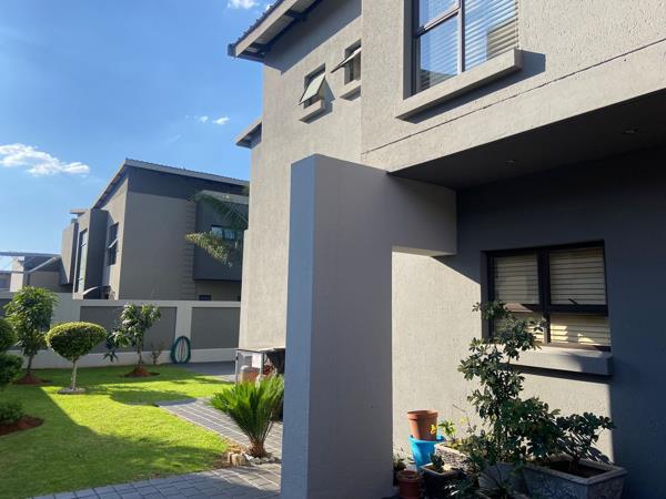 This Modern Family home offers 4 Bedrooms with built-in cupboards (Main en-suite with pajama lounge) , 2 bathrooms that are fully tiled and a guest toilet. Modern kitchen with built-in cupboards for extra storage, granite counter tops, open plan that leads to family room and braai room with built in braai that is perfect for meals with family. Open plan living area that leads out to spacious patio and private garden that is ideal for relaxing and entertaining guests.