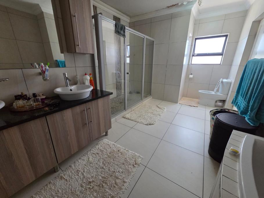 This Modern Family home offers 3 Bedrooms with built-in cupboards (All rooms en-suite) , 3 bathrooms that are fully tiled and a guest toilet and outside staff toilet. Modern kitchen with built-in cupboards for extra storage, granite counter tops, open plan that leads to family room that is perfect for meals with family. Open plan living area that leads out to spacious patio with built-in braai and private garden with beautiful sparkling pool that is ideal for relaxing and entertaining guests.