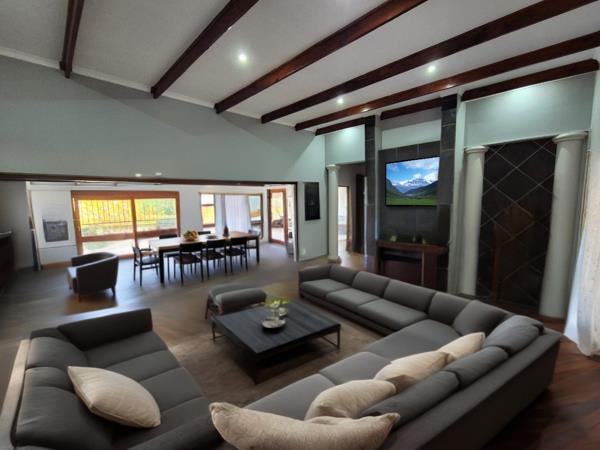 Spacious Open-Plan Living Area featuring a lounge and dining space that flows seamlessly into a modern kitchen with abundant storage, a scullery, and space for all appliances.