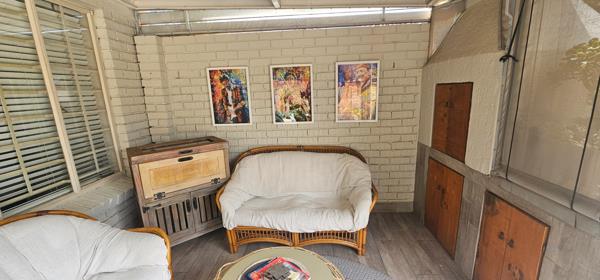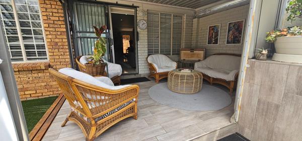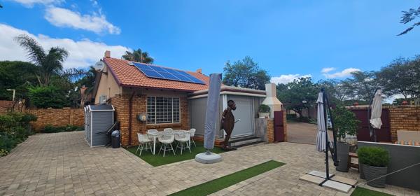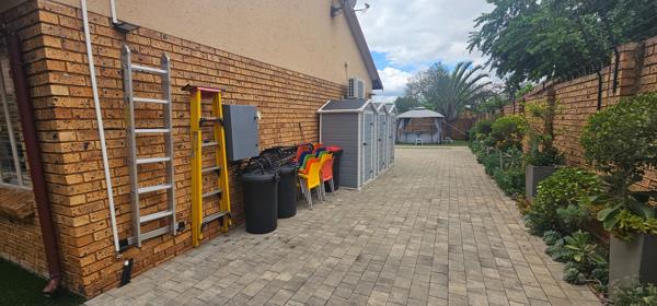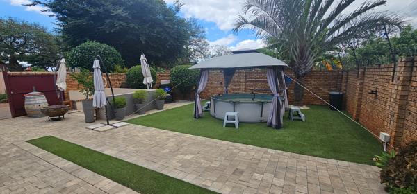 The House have Solar Panels, a Victron Inverter and Backup Battery. The yard is Low Maintenance with artificial grass and paving around the Boma and Patio with built-in Braai. The Six Seater Garden set with Table and Chairs as well as the Umbrella is included in the sale. So is the Patio 5 Seater Bamboo set with cushions and Table. A Portable pool with Gazebo and Umbrellas will help you cool down in Summer whereas the Patio can be closed with canvas during the winter. There are 3 Keter Garden Storage Sheds with Garden and Grass Maintenance equipment. An Irrigation system waters the plants on the Eastern Wall.