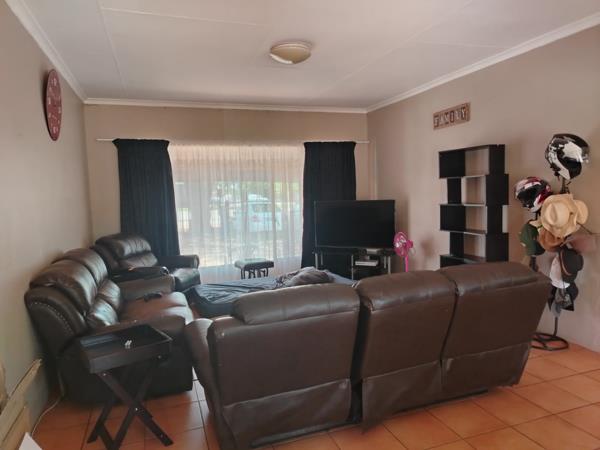 This house offers 3 spacious bedrooms, all fitted with built-in cupboards, and 2 bathrooms. It features a spacious kitchen with built-in cupboards, as well as a lounge and dining area.