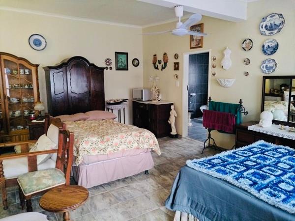 This property features a main house with three spacious bedrooms and a full bathroom. The inviting lounge and dining area provide a perfect space for relaxation and entertainment, while the well-equipped kitchen comes complete with a convenient pantry. The property is secured with electric gates and includes domestic quarters for added convenience. Additionally, there are two flatlets, a single garage, and an outside toilet. The outdoor area boasts a lapa, lush lawn, and an array of fruit trees and shrubs. The property is equipped with 3-phase electricity and also has a borehole for efficient irrigation. This property is a must-see!
