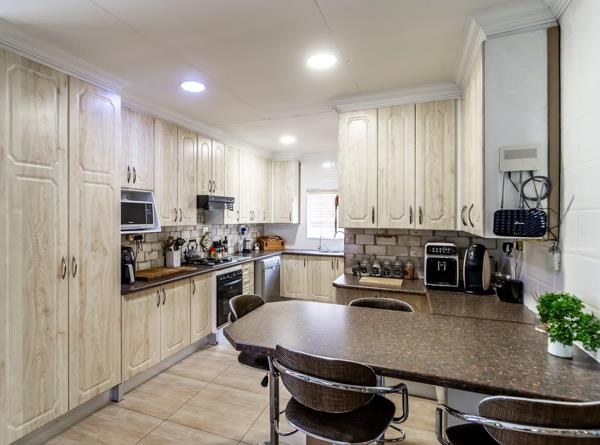 From the moment you enter this supreme home, you realise that it is in a class of its own. The open plan living area includes a beautiful kitchen with scullery, a large, sunny lounge, opening onto a relaxing patio and outside to a boma area with pizza oven, braai and ample seating. To the other side of the garden awaits a good sized pool with a tropical feel.