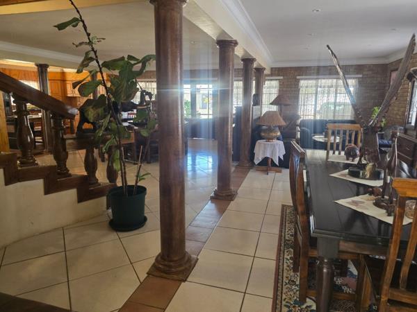 Welcome to luxurious living in the prestigious Bougainvillea Estate! This exquisite 4-bedroom home, some of the rooms walking out onto balconies, 3 bathrooms, separate toilets, braai- room, large office space, borehole, water tanks , boasts unparalleled elegance, security, and comfort.