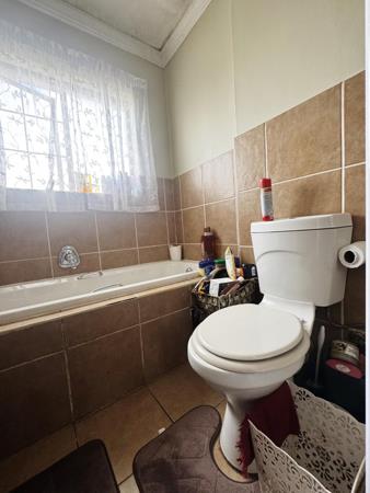A full bathroom comprising of a bathtub, shower, toilet & basin.