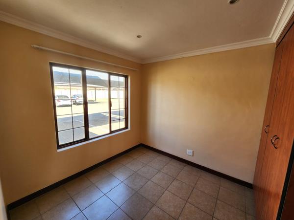 The unit features a well-appointed kitchen, leading into a cozy living area with direct access to your own private garden. Ideal for relaxation or a small pet. Residents also enjoy exclusive access to a clubhouse with a swimming pool and braai area, perfect for socializing and unwinding.