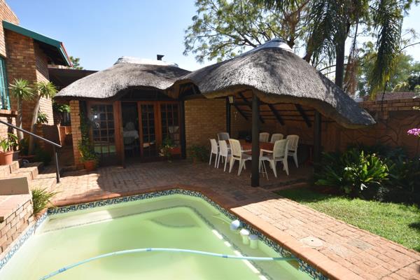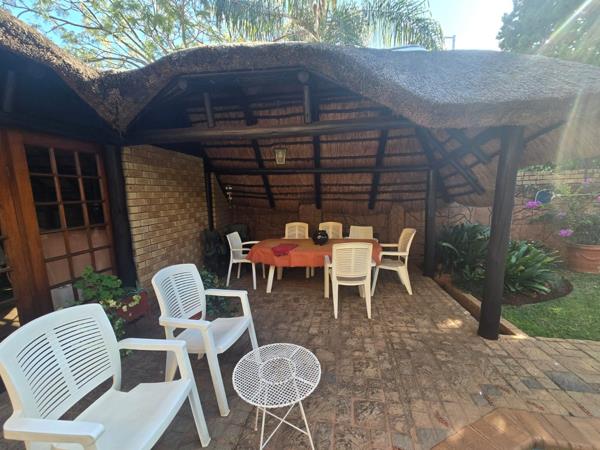 For those who love to entertain, an entertainment room with a built-in bar and a fireplace is ideal for hosting friends and family. Outside, there is a welcoming Lapa with a built-in braai overlooking a lovely garden with a swimming pool.