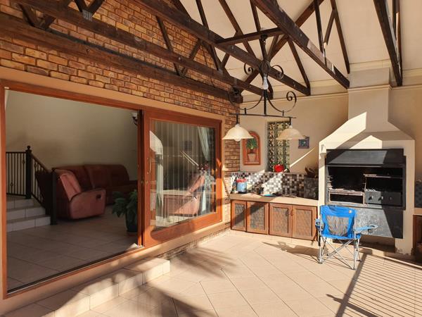 Outside, youll find a generously sized garden where kids and pets can run free, alongside a sparkling swimming pool, and a covered lapa with built-in braai the perfect space for relaxed outdoor gatherings. The property also includes 3 garages, offering secure parking and extra storage.