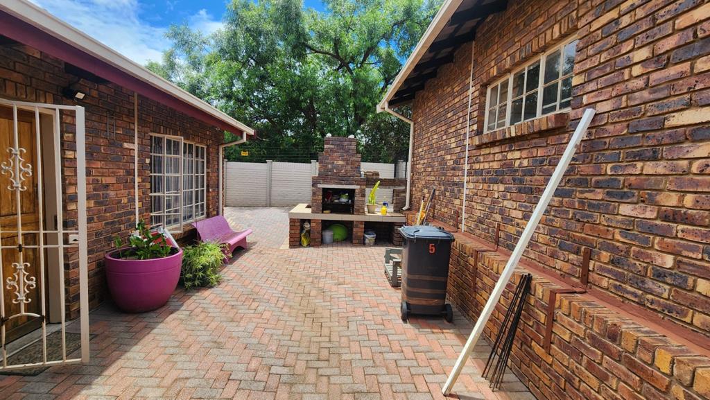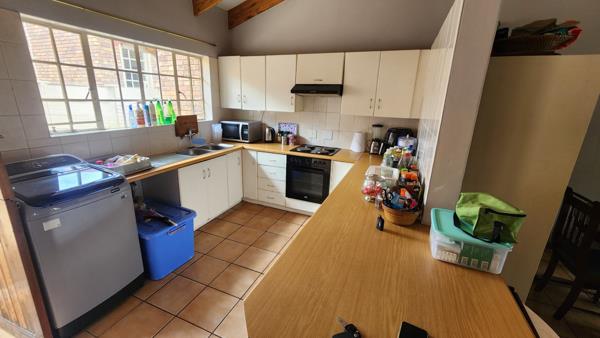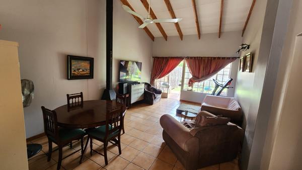 Lovely 2 bedroom townhouse with 2 bathrooms ,open plan kitchen and living area ,build in fire place ,nice garden with pets allowed and braai area with double garages and parking