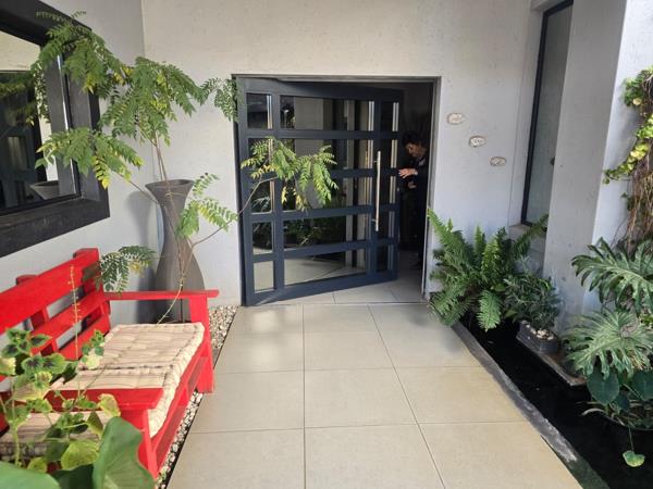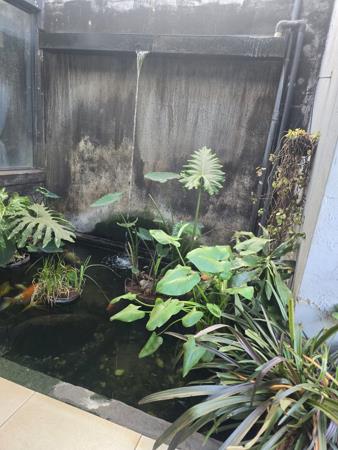 Lovely entrance with waterfall, koi-fishes and plants. Strong security gates and burglar bars. Alarm system. Easy maintainable garden with automatic irrigation system. Alarm system with ADT!