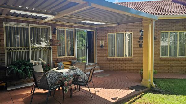 The Main House comprises of 3 Bedrooms, all with large built in cupboards, 2 Full Bathrooms and Kitchen with separate Scullery. The Kitchen offers enough Cupboard and working surfaces and Pantry. The Formal Lounge is currently used as a study and the other Lounge is used a TV room. The Dining Room, TV room and Kitchen is open plane and walks out to a patio and Garden. Adjacent to the garden is a neat Lapa with Built-in Braai. An area between the Kitchen and Garage is used as Laundry. A Wendy House is used to store Garden Tools.
