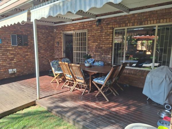 The home features 3 spacious bedrooms with built-in cupboards and 3 bathrooms, including a main en-suite. The open-plan kitchen is both practical and elegant, fitted with granite countertops, a breakfast nook, and a separate scullery for added convenience.
