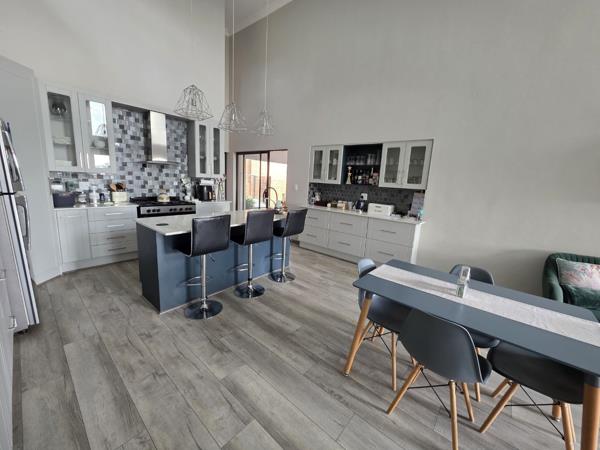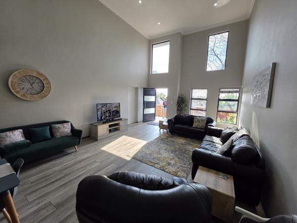 This unique home offers two fully equipped houses under one roof, each with its own spacious living areas, modern kitchen with granite counter tops, scullery, and double-volume ceilings that enhance the feeling of openness and light. Entertainment area with built-in braai overlooking green garden with swimming pool, creating the perfect atmosphere to relax in or entertaining friends and family. Staff quarters.