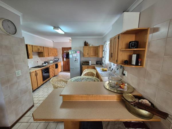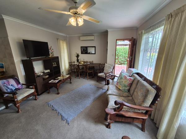 It features 3 generous bedrooms with built-in cupboards and 2 modern bathrooms (main en-suite). The open-plan kitchen is well designed with built-in cupboards, a breakfast nook, pantry, and scullery, flowing seamlessly into the dining and living area fitted with air conditioning.