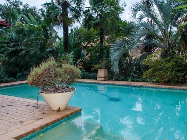 Entertain effortlessly on the patio with a built-in braai, overlooking a sparkling swimming pool and a there is a big garden.