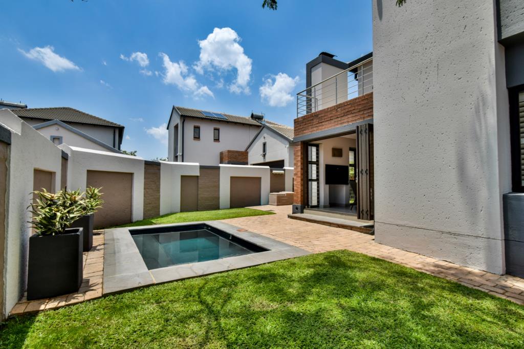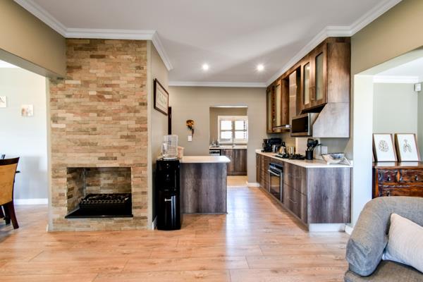 Featuring a spacious living room connected to a beautiful kitchen with a gas hob. The dining room leads into an enclosed entertainment area with built-in braai. There is also a study and guest toilet on the ground floor.