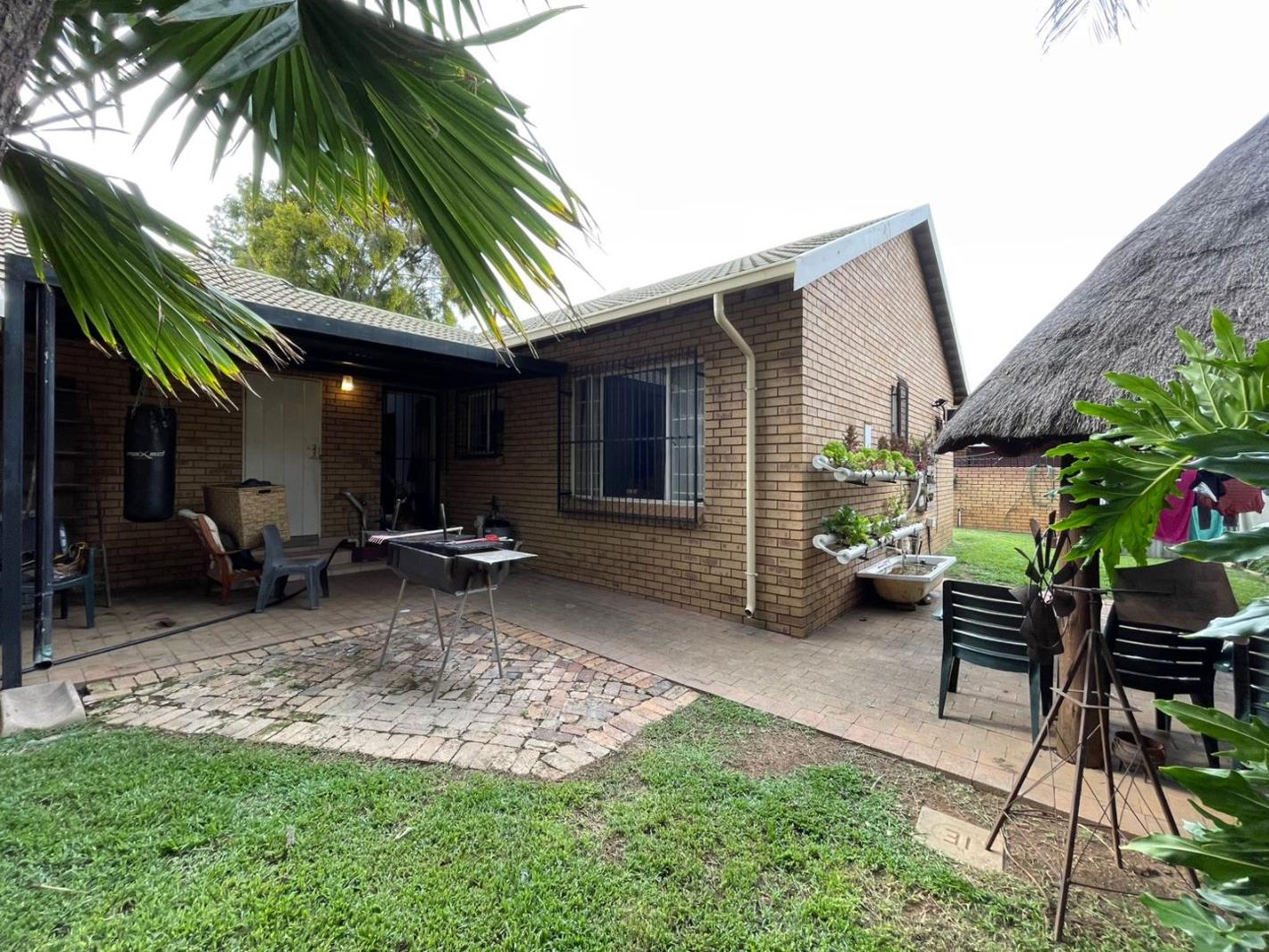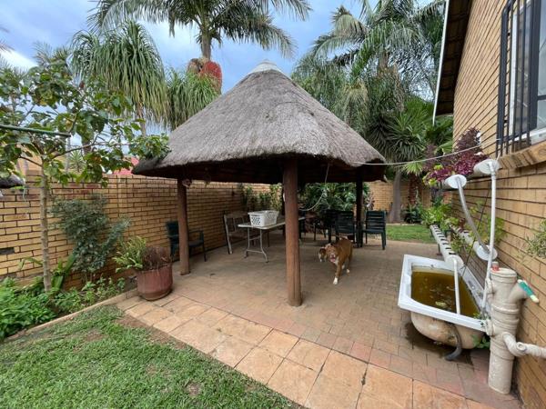 Discover this charming duet home set on a sizable stand, complete with a double garage and an additional carport. The exterior offers an inviting entertainment atmosphere featuring a covered patio, a small lapa, & a beautifully maintained garden, perfect for relaxed gatherings.