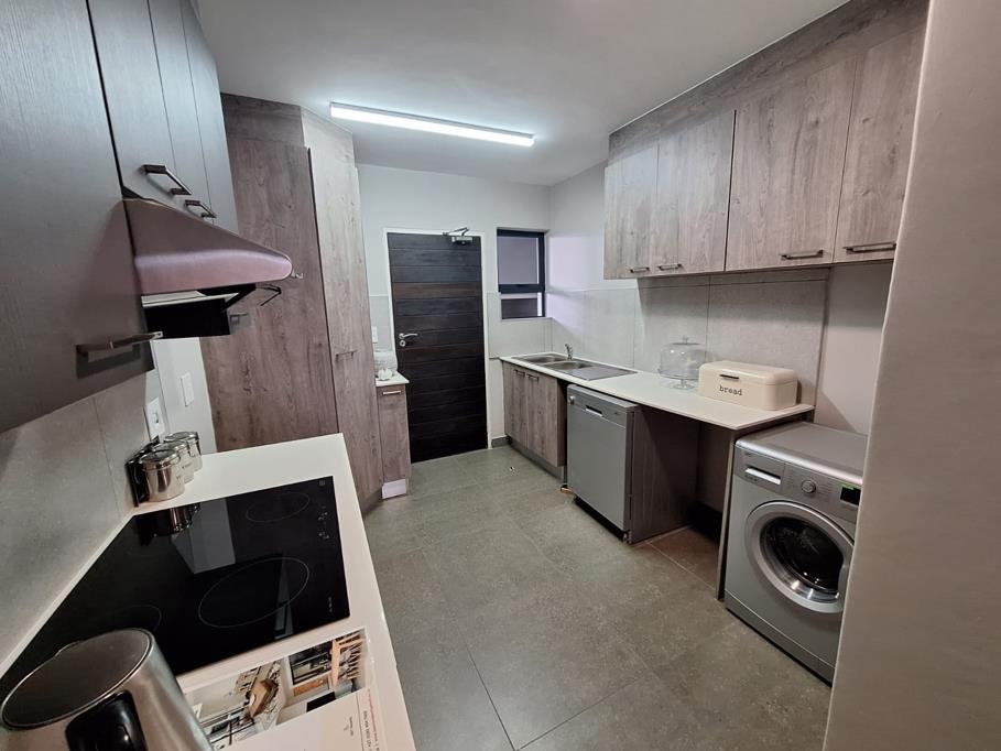 This fully tiled, stylish home features a sleek open-plan kitchen with granite countertops, a pantry, built-in oven, hob, and extractor fanperfect for modern living. The living and dining area flows effortlessly into your private covered patio, complete with a built-in braai, ideal for entertaining and overlooking your lush green garden.
