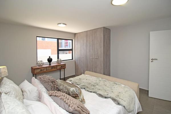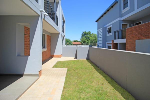 Stunning 2-bedroom, 1 bathroom apartment. The open plan living area is spacious and walks out on the patio with a built-in braai and garden.