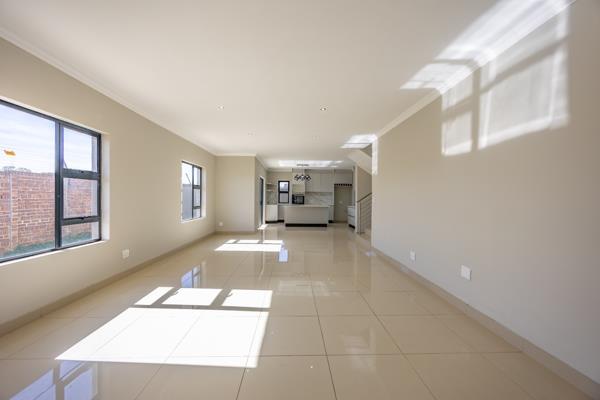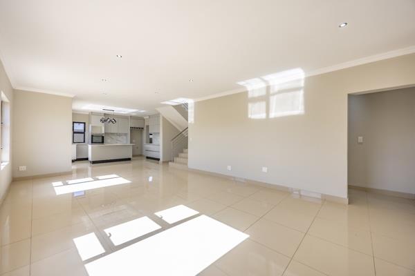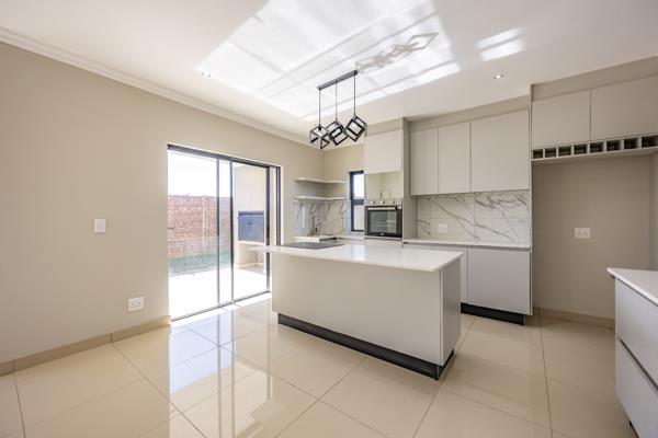 The seamless flow between the open-plan lounge, dining area, and kitchen creates a welcoming space for both relaxed living and entertaining. The kitchen features an eye-level oven, a sleek stovetop on the central island, and a dedicated scullerymaking daily life easier and tidier. Step outside to the covered patio with a built-in braai, ideal for weekend get-togethers and year-round enjoyment.