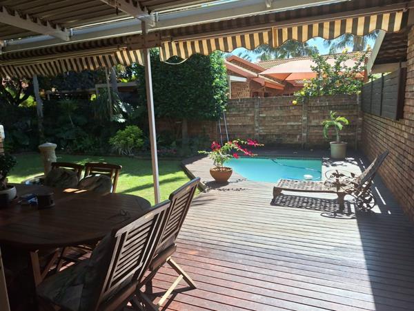 This Incredible Family home offers 3 Bedrooms with built-in cupboards , 3 bathrooms that are fully tiled. Modern kitchen with built-in cupboards for extra storage, granite counter tops, open plan that leads to family room that is perfect for meals with family. Open plan living area that leads out to large patio and private garden and a sparkling swimming pool that is ideal for relaxing and entertaining guests.
