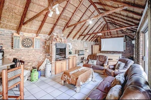 The heart of the home is a well-appointed kitchen, flowing seamlessly into the spacious living areas. Step outside to a covered lapa and entertainment area, ideal for hosting family and friends. The heated swimming pool ensures year-round enjoyment, while the lush garden supported by an irrigation system provides a serene retreat.