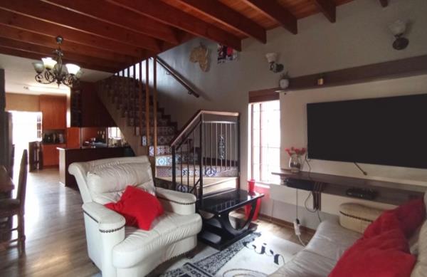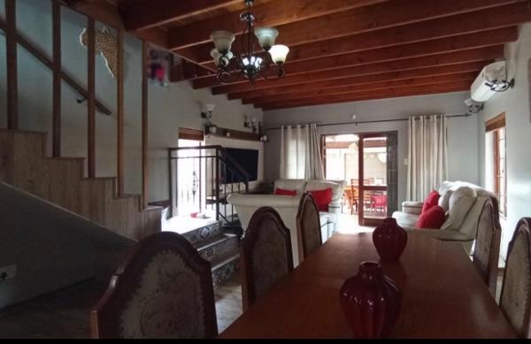 Elegancy at its best, four spacious bedrooms, main bedroom with en-suite, an inviting living room seamlessly connect to a terrace that boasts a built-in braai and overlooks the sparkling swimming pool, creating the perfect space for entertaining or relaxing. The dining room adjoins an open-plan kitchen, with scullery, laundry area.