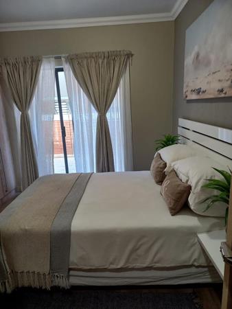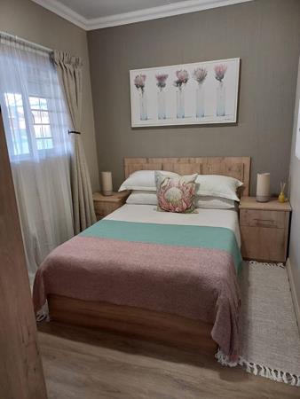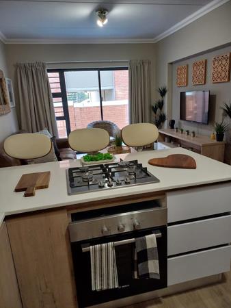 The main bedroom features a private ensuite bathroom, while the open-plan kitchen is fitted with a gas stove, perfect for home chefs, and a gas geyser ensures reliable hot water year-round.