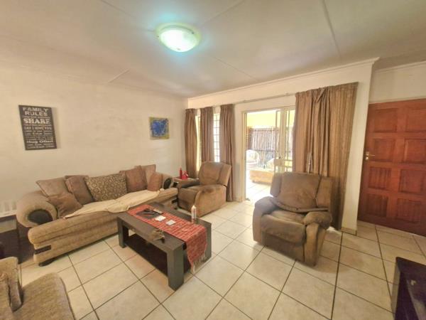 This well-designed home features 3 bedrooms, 2 bathrooms, and spacious open-plan living areas that flow seamlessly to a patio with a built-in braai and a private garden. The complex also offers a communal swimming pool, perfect for relaxation. Additional highlights include a double garage, ample visitor parking, and a solar geyser for added efficiency.