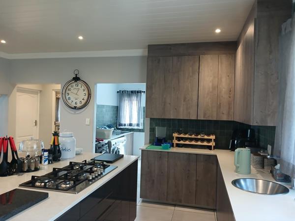 The open-plan living areas connected to the kitchen flow seamlessly to the well maintained garden and a sparkling pool, perfect for entertaining family and friends. A morden kitchen with granite countertops, abundant storage and a separate scullery makes everyday living a pleasure.