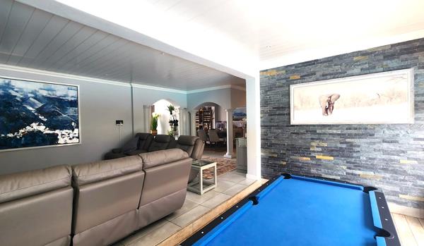 The family dining and lounge area opens towards includes two patios with built in braai and access to the swimming pool