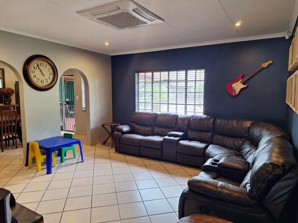 Entertainment area with a built-in braai and bar. - Lapa with braai facilities, swimming pool, and bar.