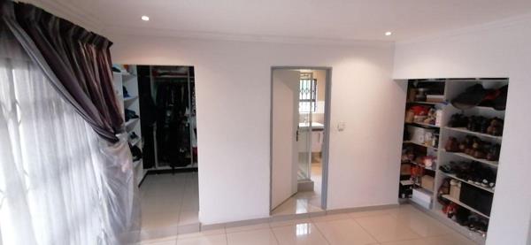 Upstairs, the home continues to impress with a cozy TV room that leads to the main en-suite bedroom, which features a walk-in closet, shower, basin, and toilet. There is another bedroom with built-in cupboards, a separate toilet with a basin, and an additional bedroom with built-in cupboards and a balcony overlooking the garage.