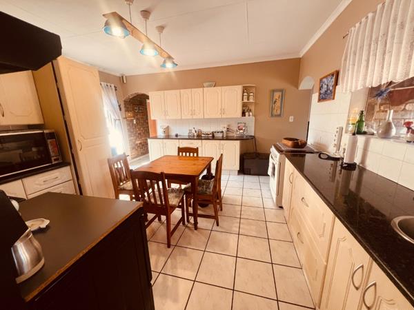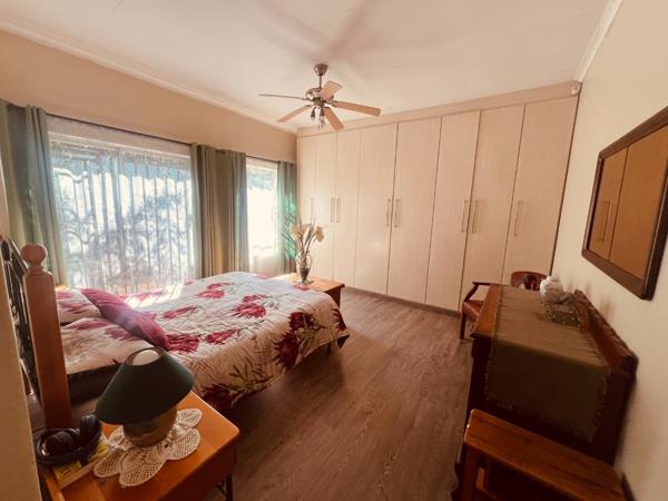 This spacious and versatile property offers a world of possibilities, ideal for professionals seeing clients from home or families looking for extra space and income potential. The main house features a generously sized main bedroom with ample built-in cupboards and a full en-suite bathroom. Two additional bedrooms also offer built-in cupboards and are serviced by a second bathroom with a bath, shower, and basin. The kitchen is large with plenty of cupboard space, a separate scullery/laundry area, and flows into two comfortable lounges and a dining room. A study can easily be converted into an extra bedroom, while the enclosed entertainment area with built-in braai and guest toilet is perfect for hosting.