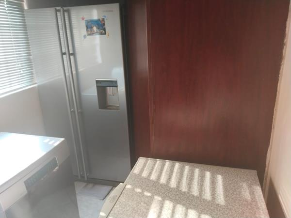 The modern kitchen features ample, stylish built-in cupboards, elegant granite countertops, and a separate scullery and laundry area for added convenience.