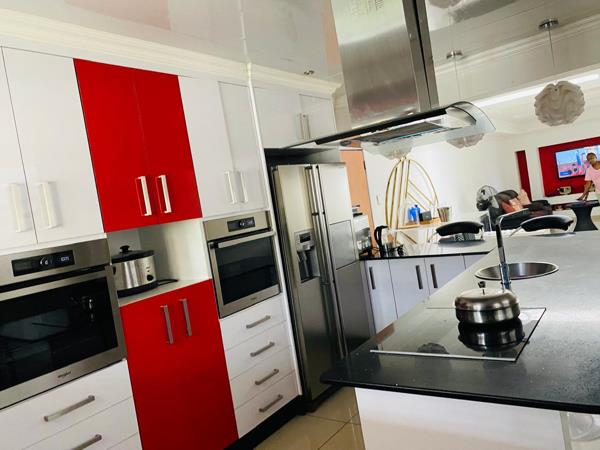Step outside into a private entertainment room /bar/ men cave/ covered lapa equipped with a built-in braai (barbecue) and a sparkling swimming pool, offering the perfect space for relaxation and fun.