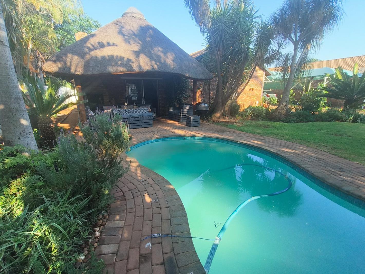 The lapa outside and inside, includes a built-in bar, indoor and outdoor braai areas, and a patio area overlooking the pool and garden, creating the perfect setting for gatherings with friends and family.