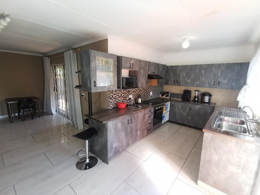 Spacious 3 bedroom house in Ninapark, an upmarket suburb. Well secured with electrical fencing in a peaceful area. This house offers 3 spacious bedrooms with 2.5 bathrooms. Main bedroom with more than ample wardrobes and on suite bathroom, nicely tiled. The kitchen is modern and spacious with a practical outlay leading to dining, tv and lounge area beautifully tiled and elegant. Spacious yard with garden, double lock up garage attached to a covered carport as well as another carport attached to house which can be used for a patio next to kitchen and dining area. This home is walking distance from Ninapark shopping complex with most amenities like pharmacy, Woolies, Super Spar, Spur and many more. Close to schools, hospital and most amenities. This house is well priced, spacious with all the comfort that a family wish for. Contact us for a viewing. We invite you to make an offer