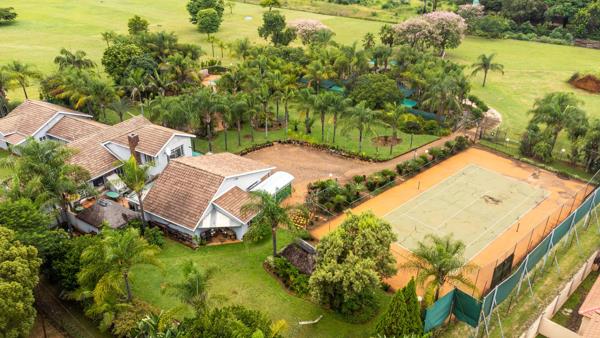Outdoor entertainment and leisure opportunities abound, with a swimming pool, tennis court, water tanks and borehole ensuring a reliable water supply. A double garage and four carports provide ample parking.