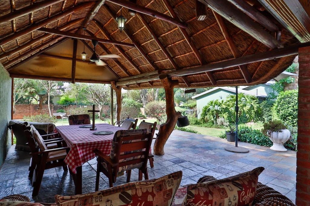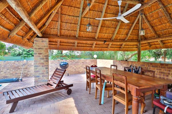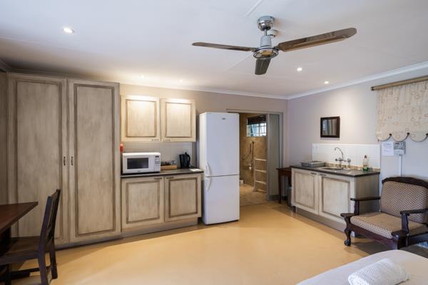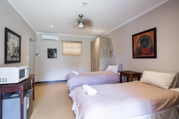 Annex: Detached from the main house, it features a Lapa, reception area, kitchen, serving station, and dining room. The annex boasts 4 en-suite bedrooms, each equipped with air conditioning and ceiling fans. Two of the bedrooms are extra-large with kitchenettes, and one is wheelchair accessible. All rooms open to the beautifully landscaped garden.