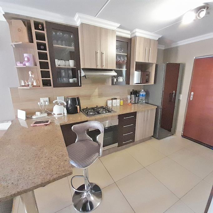 Open plan kitchen with gas stove, space for a dishwasher, and modern furnishings