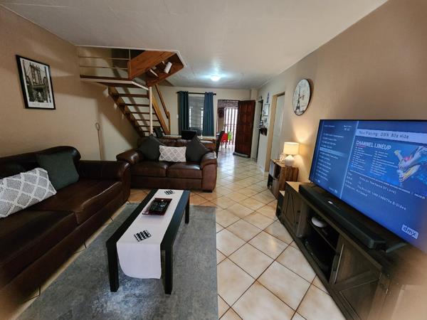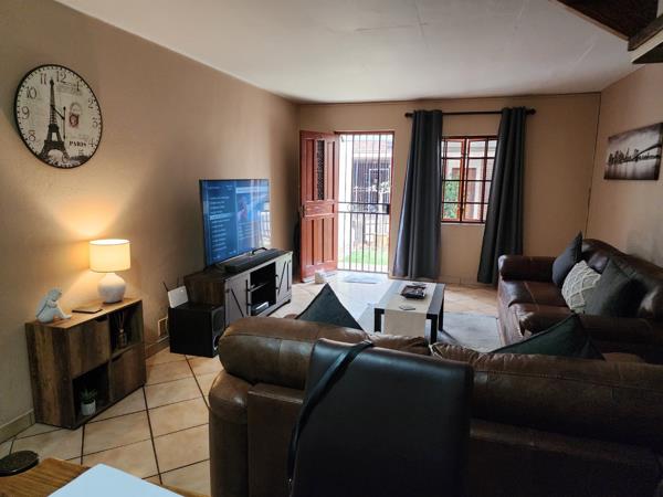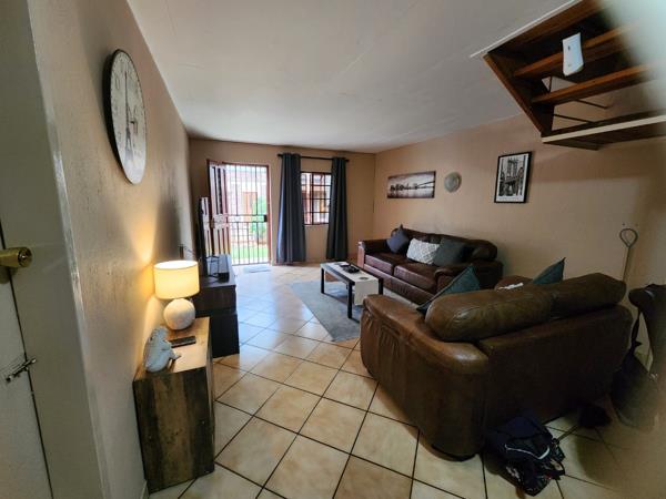 Outside, theres a cozy patio with a built-in braai for entertaining or relaxing, a neat front garden where your pets can enjoy the garden at the backgreat for a little extra outdoor space without too much upkeep. You also have a lock-up garage and parking in front of the garage.