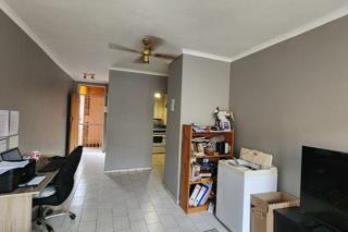 Inside, you are welcomed by a comfortable lounge and dining area that flows into a neat kitchen fitted with classic wooden cupboards. The unit offers 1.5 bedrooms a generously sized main bedroom with built-in space and an additional smaller room that can easily be used as a study, nursery, or guest room. A spacious bathroom, complete with a separate toilet, adds to the practicality of the home.