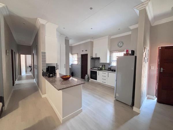 Discover the allure of luxurious living in this charming 3-bedroom, 2-bathroom home, nestled within a secure and serene complex in the heart of Gauteng. This property promises both comfort and style, featuring a main ensuite for ultimate privacy. Step inside to find an inviting lounge that seamlessly transitions into a sophisticated dining areaperfect for hosting unforgettable dinner parties or relaxing family meals.